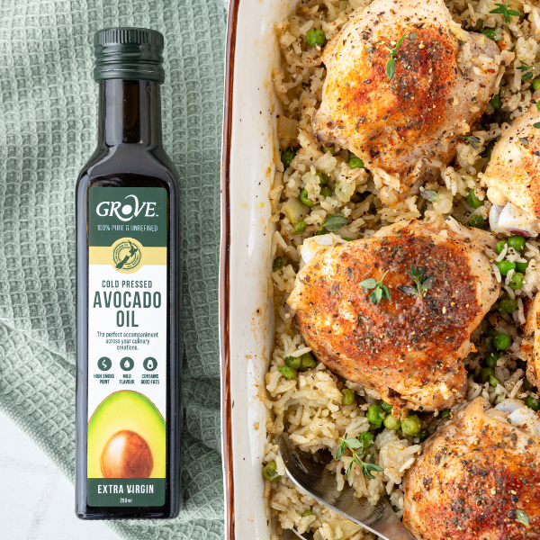 Grove Extra Virgin Avocado Oil has a delicate, slightly buttery flavour and exceptionally high smoke point, making it a healthy choice for baking and perfect for searing food at high temperatures.