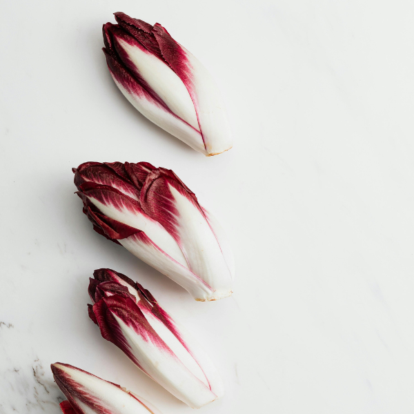 Endive, with its crisp, red-tinged leaves forming tight, bullet-shaped heads, delivers a pleasantly bitter, nutty flavour that adds zing to salads and appetisers.